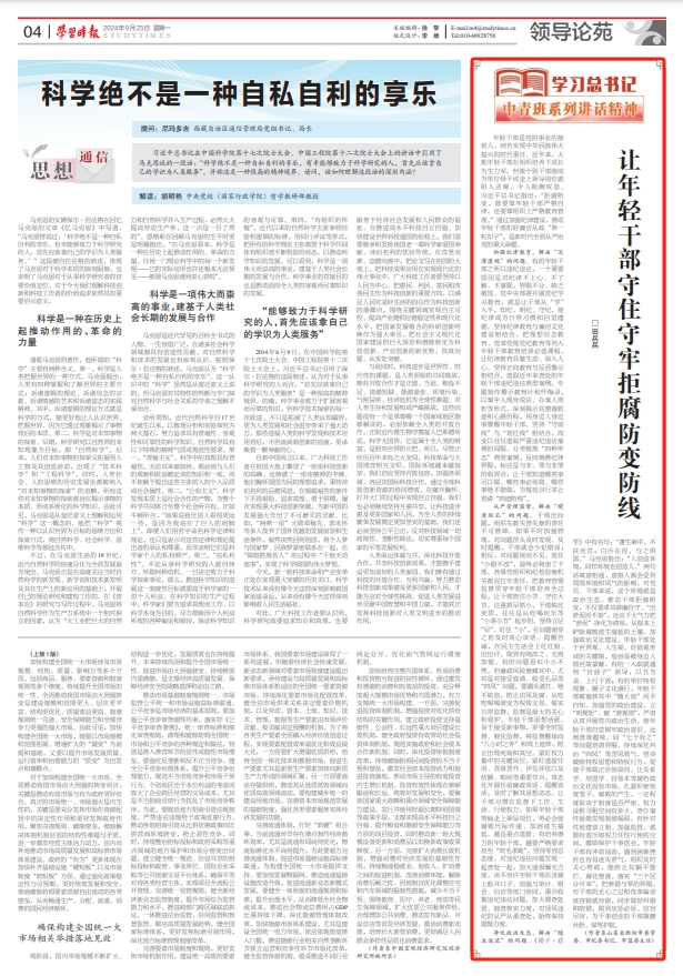 2024年9月23日,《学习时报》4版刊发潍坊市委常委、市纪委书记、市监委主任田兵兵署名文章《让年轻干部守住守牢拒腐防变防线》。全文如下让年轻干部守住守牢拒腐防变防线田兵兵 年轻干部是党的事业的接班人,肩负实现中华民族...