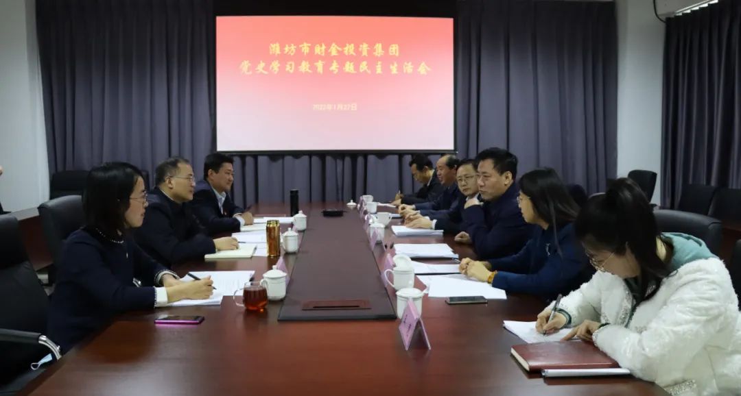 按照中央部署和省委、市委要求,1月27日,市财金投资集团党委召开党史学习教育专题民主生活会,会议由集团党委书记、董事长于治伦主持,集团党委班子成员参加会议。市委党史学习教育第五巡回指导组组长、市政协常委、二级巡视员刘衍信...
