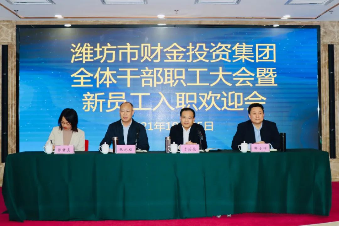 2021年10月25日下午,潍坊市财金投资集团召开全体干部职工大会暨新员工入职欢迎会,集团党委书记、董事长于治伦参加会议并讲话,集团总经理张兆福主持会议。会上,集团党委书记、董事长于治伦首先对新入职员工的加入表示热烈欢迎...