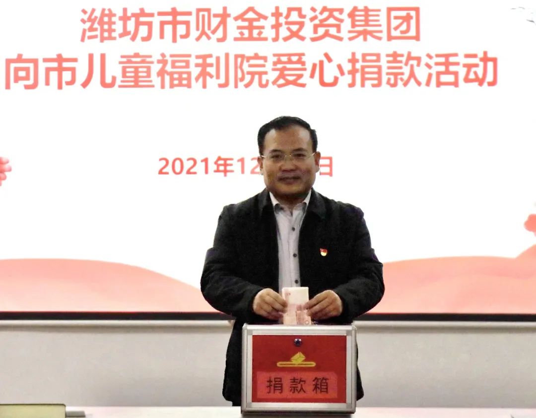 12月16日,市财金投资集团到潍坊市儿童福利院开展送温暖、献爱心活动。集团党委书记、董事长于治伦代表集团全体干部职工将募集到的6300元爱心捐款和钙奶饼干、牛奶、口罩等物资送到市儿童福利院副院长杨守伟手中。市政府投融资管...