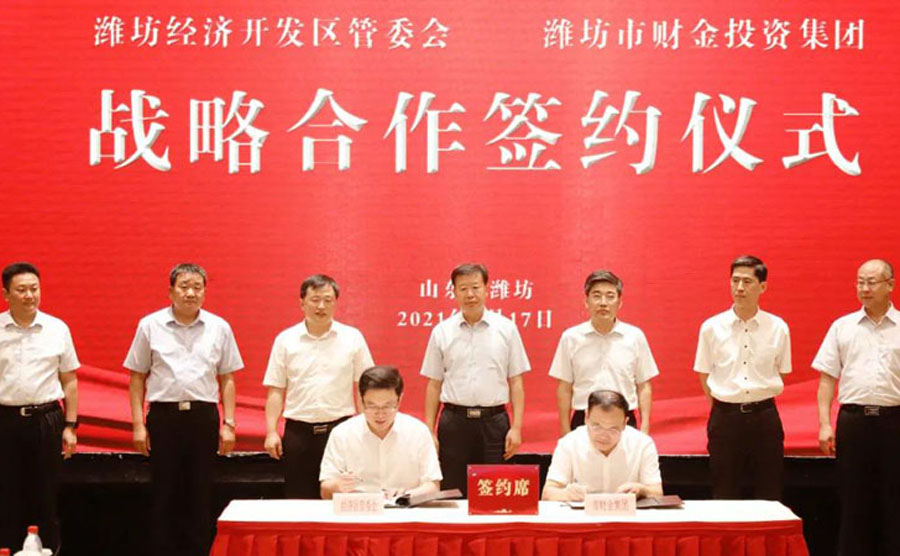 8月17日上午,潍坊经济开发区管委会与潍坊市财金投资集团战略合作签约仪式在经济区新富佳悦会议中心举行。副市长卞汉林、市政府副秘书长葛汝千等出席并鉴签;寒亭区委书记、潍坊经济开发区(农综区核心区)党工委书记滕双兴,市财政局...